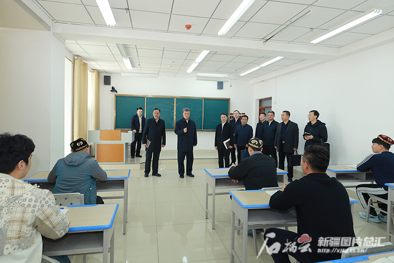 3月21日,自治区党委书记马兴瑞在新疆伊斯兰教经学院,走进本科班教室察看教学情况,同正在上课的老师和同学们亲切交谈。天山网-新疆日报记者 崔志坚摄