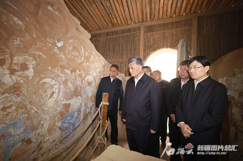 3月23日,自治区党委书记马兴瑞来到鄯善县吐峪沟石窟,听取考古发掘成果介绍,察看洞窟、壁画等保护情况。天山网-新疆日报记者 崔志坚摄