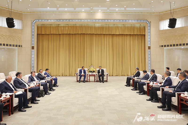 4月14日,自治区党委书记马兴瑞在乌鲁木齐会见乌兹别克斯坦费尔干纳州州长博扎罗夫一行。天山网-新疆日报记者 崔志坚摄