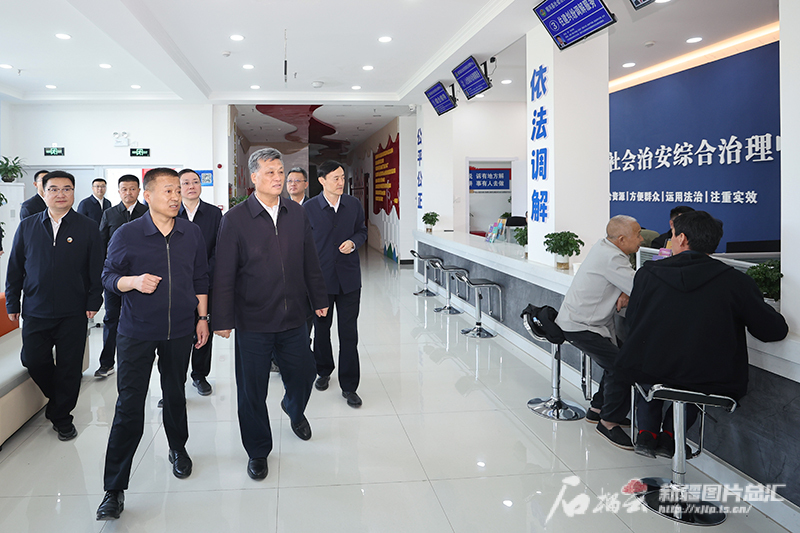 4月22日,自治区党委书记马兴瑞在精河县城镇派出所,详细询问警力下沉工作成效。天山网-新疆日报记者 崔志坚摄