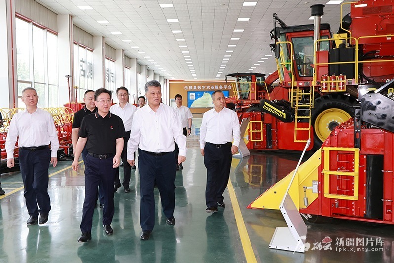 马兴瑞、艾尔肯·吐尼亚孜来到沙雅钵施然智能农机有限公司,察看产品展示,了解企业发展情况。马兴瑞勉励企业强化创新引领,提升国产采棉机性能效率和市场占有率,在新疆乃至中亚国家棉花产业发展中大显身手;叮嘱有关负责同志要加强耕地保护,推动高标准农田建设取得更大进展。