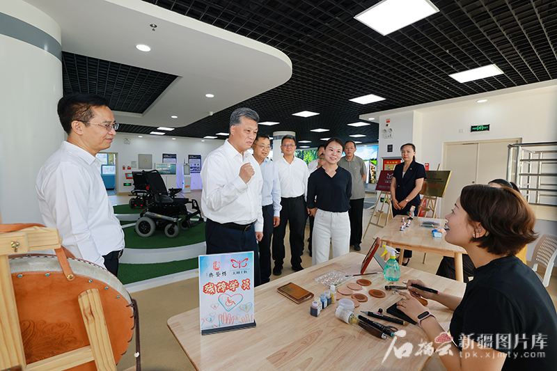 6月16日,自治区党委书记马兴瑞在自治区残疾人联合会听取工作介绍,同残障学员亲切交流。天山网-新疆日报记者 崔志坚摄