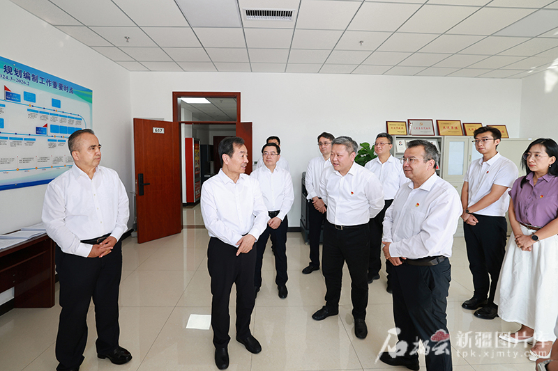 8月8日,自治区党委书记陈小江、自治区主席艾尔肯·吐尼亚孜在自治区发展改革委发展战略和规划处,详细了解自治区“十五五”规划编制进展,就谋划和推进各项重点工作同大家深入交流。天山网-新疆日报记者 崔志坚摄