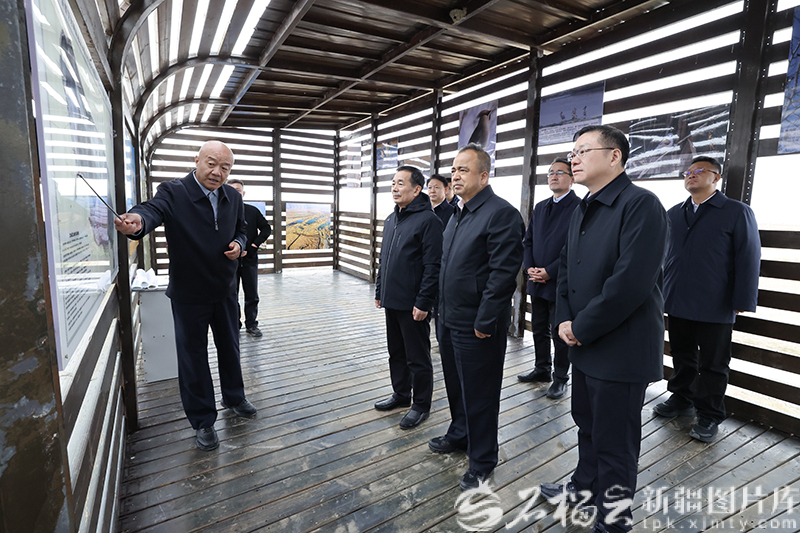 10月14日,自治区党委书记、兵团党委第一书记、第一政委陈小江,自治区党委副书记、自治区主席艾尔肯·吐尼亚孜实地察看艾比湖流域生态环境保护工作。天山网-新疆日报记者 谢龙 摄