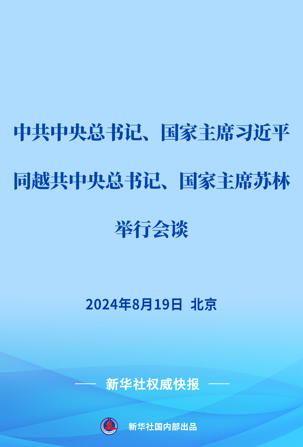 快讯:习近平举行仪式欢迎越共中央总书记、国家主席苏林访华 2024-08-19 11:08:05 新华社 点击:[] 打印 分享到: 8月19日上午,中共中央总书记、国家主席习近平在北京人民大会堂同来华进行国事访问的越共中央总书记、国家主席苏林举行会谈。 【关闭】