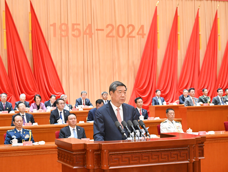 10月7日,庆祝新疆生产建设兵团成立70周年大会在新疆国际会展中心隆重举行。中共中央、国务院、中央军委发来贺信。中共中央政治局委员、国务院副总理、中央代表团团长何立峰出席大会并讲话。新华社记者 李响 摄