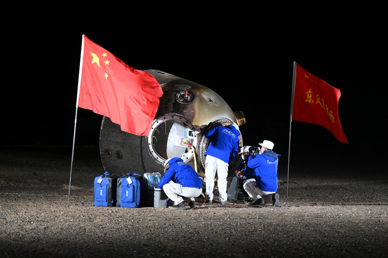 11月4日,神舟十八号载人飞船返回舱在东风着陆场着陆。