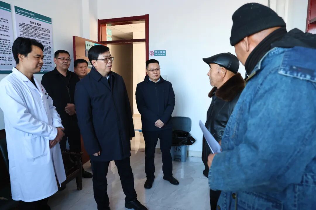 12月2日,地委书记支现伟走进额敏县玛热勒苏镇卫生院,与患者亲切交流。塔城地区融媒体中心记者苏珊琳摄