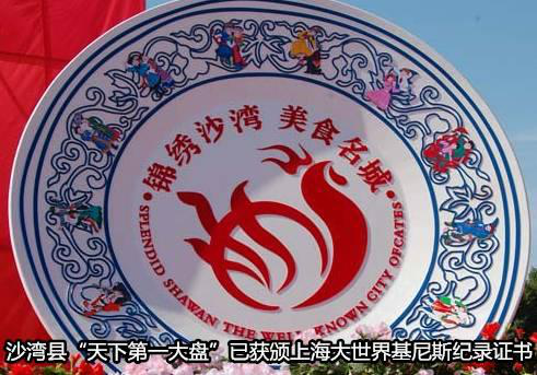 大盘美食城位于市城西1公里处,占地面积4.4万平方米,总投资1.2亿元。各楼体店铺装修各具特色,室内设计风格融合沙湾的地方历史风情,取沙湾悠久的“吉祥文化”为内涵,为单体楼取名百吉宴、黄沙梁、清镇将军府、杏花村、铁门槛、酒肆、丝绸之路和游客服务中心等,是国家AAA级景区。整个美食碧玉城以百吉宴为核心,以沙湾大盘美食为重点,以全疆各地特色餐饮为辅助,以其他娱乐、服务、烟酒等服务行业为补充,充分借助沙湾当地名吃“大盘鸡”品牌,打造以大盘餐饮为龙头的沙湾旅游产业体系,大力开发具有沙湾特色的地方餐饮文化。