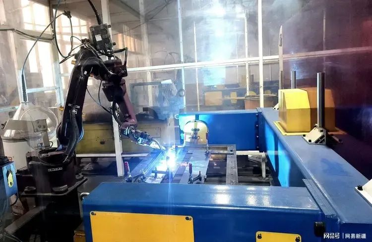 钵施然车间内,工业机器人正在焊接采锭。(王玮 摄)