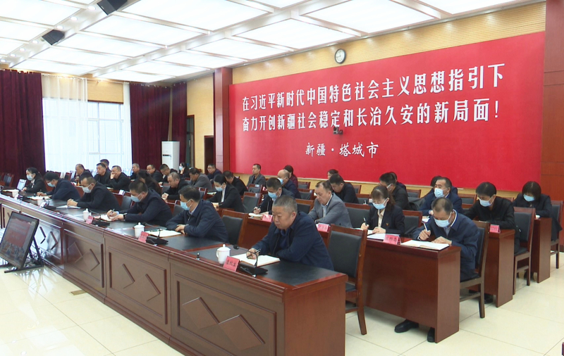 会议以电视电话会议形式召开,阿达力别克·巴合提汗、艾坦·艾提肯、达刚、骆世俊、葛永军、王新生、魏东军等四套班子在家领导,法、检两院主要领导,各单位(部门)主要负责同志在主会场参加会议,各乡镇(街道)班子成员在分会场参加会议。