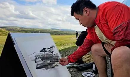 东港市现代书画院院长、辽宁省美协会员盛年红在裕民县吐尔加辽草原创作。 盛年红:在省文联的周密组织安排下,采风创作团考察观摩祖国西北边境塔城地区的风俗风貌,学习研究塔城地区建设成果和民族风情,他们认真严谨的专业态度让我钦佩,并从中学到了很多本领。 在创作作品时我会用中国传统青绿山水画的技法来表现新疆山地草原。作为新时代文艺创作者,我要拿起手中画笔描绘大美新疆,创作出更多优秀美术作品为辽宁省文联“文化润疆”工作添砖加瓦。
