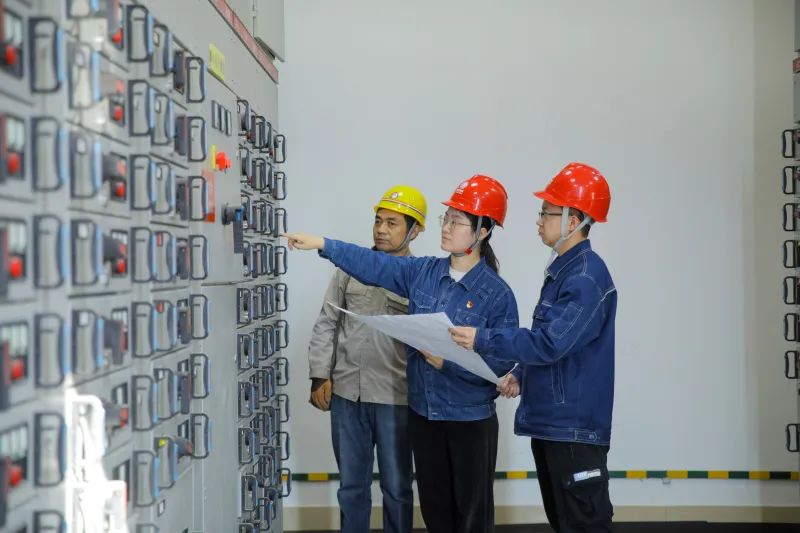 马丹和同事检查现场设备运行情况。