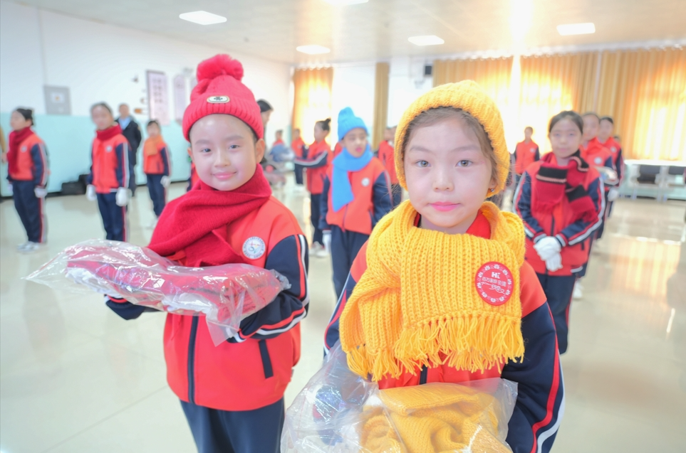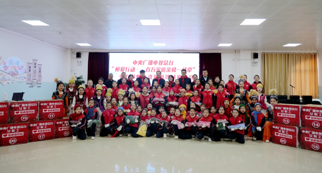 当天,中央广播电视总台机关党委副书记、总台工会主席钱宏江一行把总台女职工们一针一线编织的19箱爱心捐织物,送给每一位在场的同学们,他们的脸上绽放出了开心的笑容,眼中闪烁着喜悦与感动。