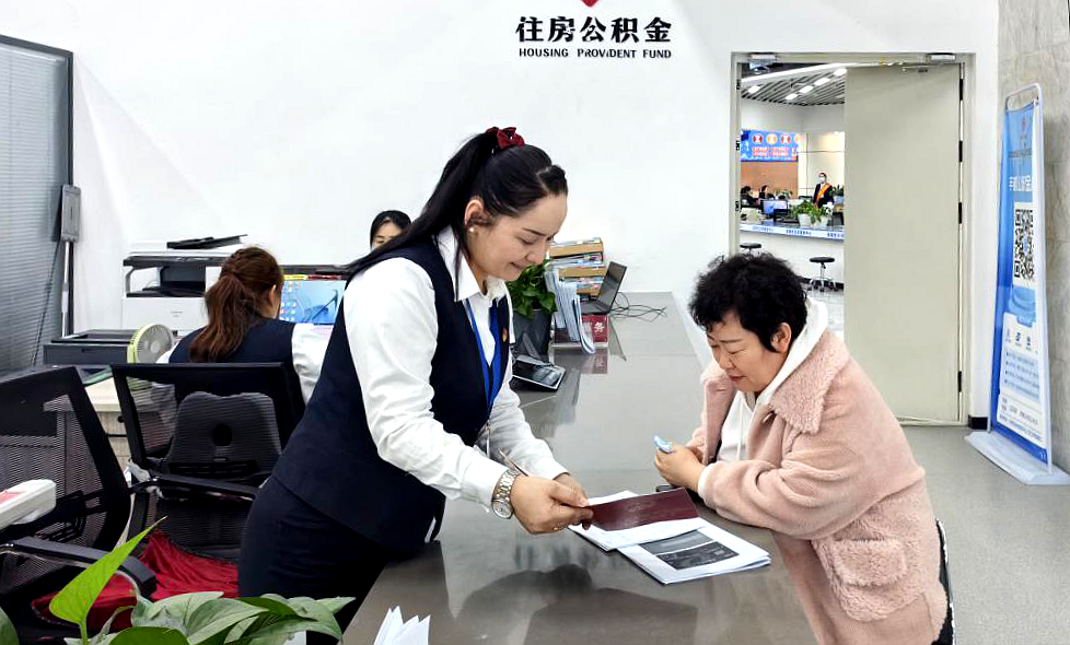 沙湾市管理部办理老旧小区改造提取公积金业务。塔城地区融媒体中心通讯员夏迪曼·木呼塔摄