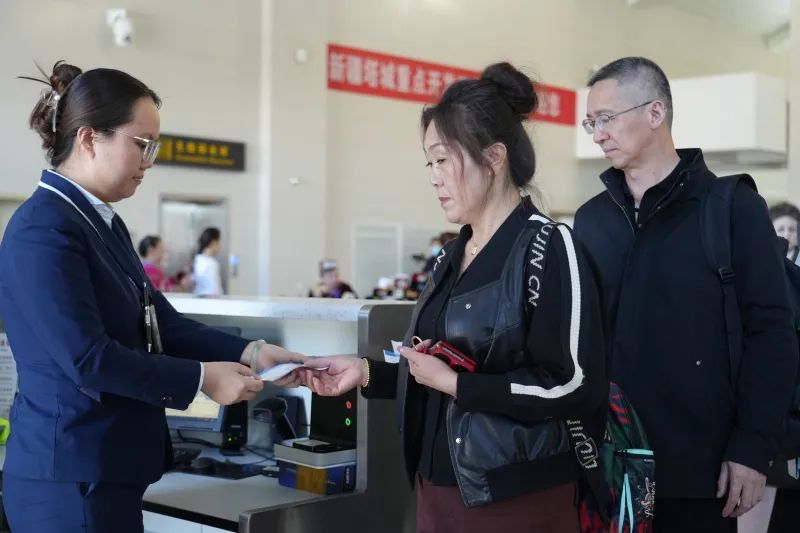 工作人员在为旅客检票。