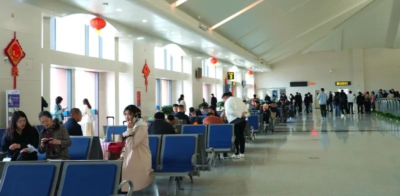 塔城千泉机场游客等候航班。