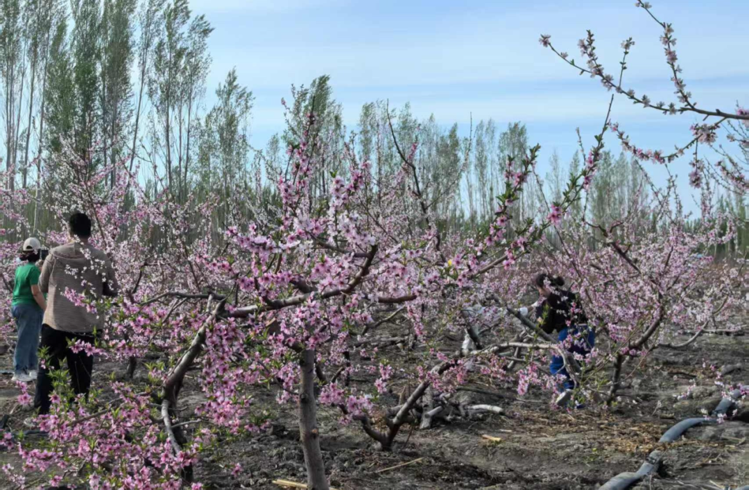 新疆乌苏桃科技小院以乌苏市哈图布呼镇田禹家庭农场为依托单位。农场投入资金120万元左右,建成油蟠、水蜜桃等9个品种桃园145亩地。依托新疆农科院园艺所张大海研究员团队,研发探索农艺延迟花期防倒春寒技术,对中油21、锦春黄桃、油蟠7-7等优质品种高效种植技术示范培训推广,带动当地桃综合种植技术,填补实现“农艺技术延迟花期技术空白”。