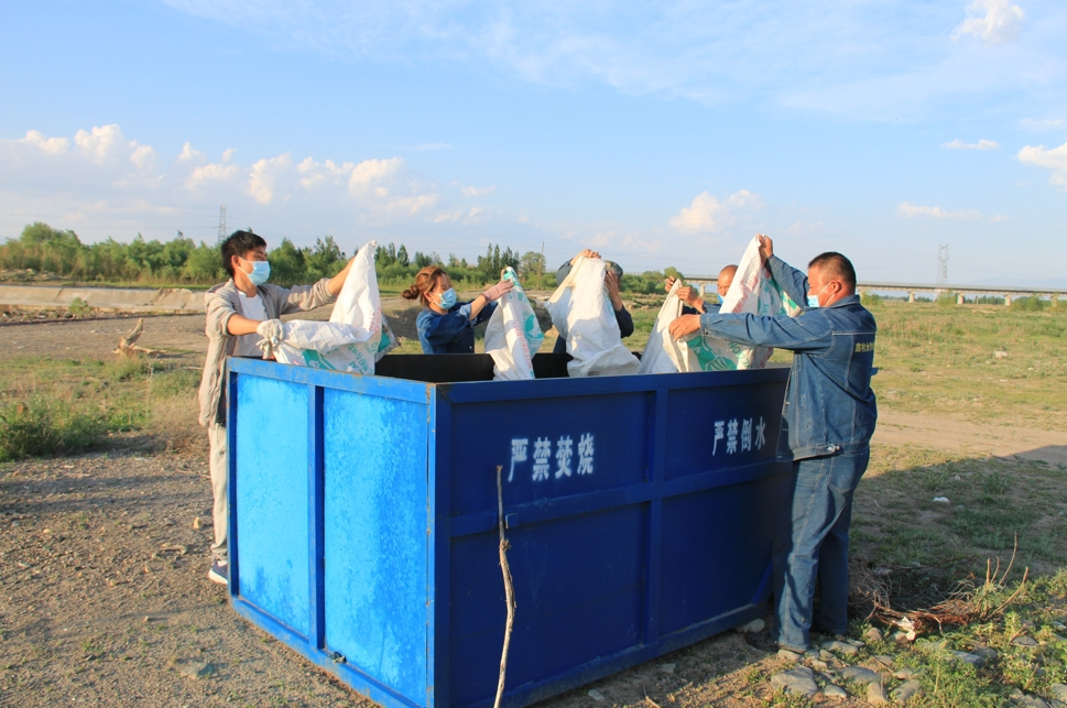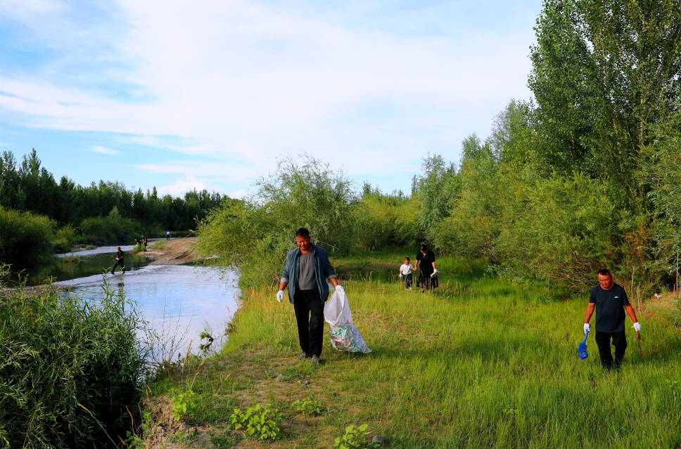 鑫牧畜禽养殖专业合作社成员与村民一起在红柳林捡垃圾。