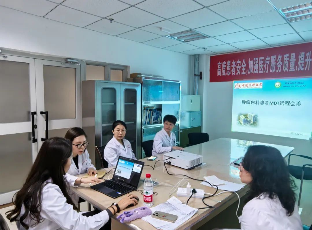 塔城地区人民医院肿瘤科与中国医科大学第四附属医院开展MDT远程疑难病例会诊现场交流。
