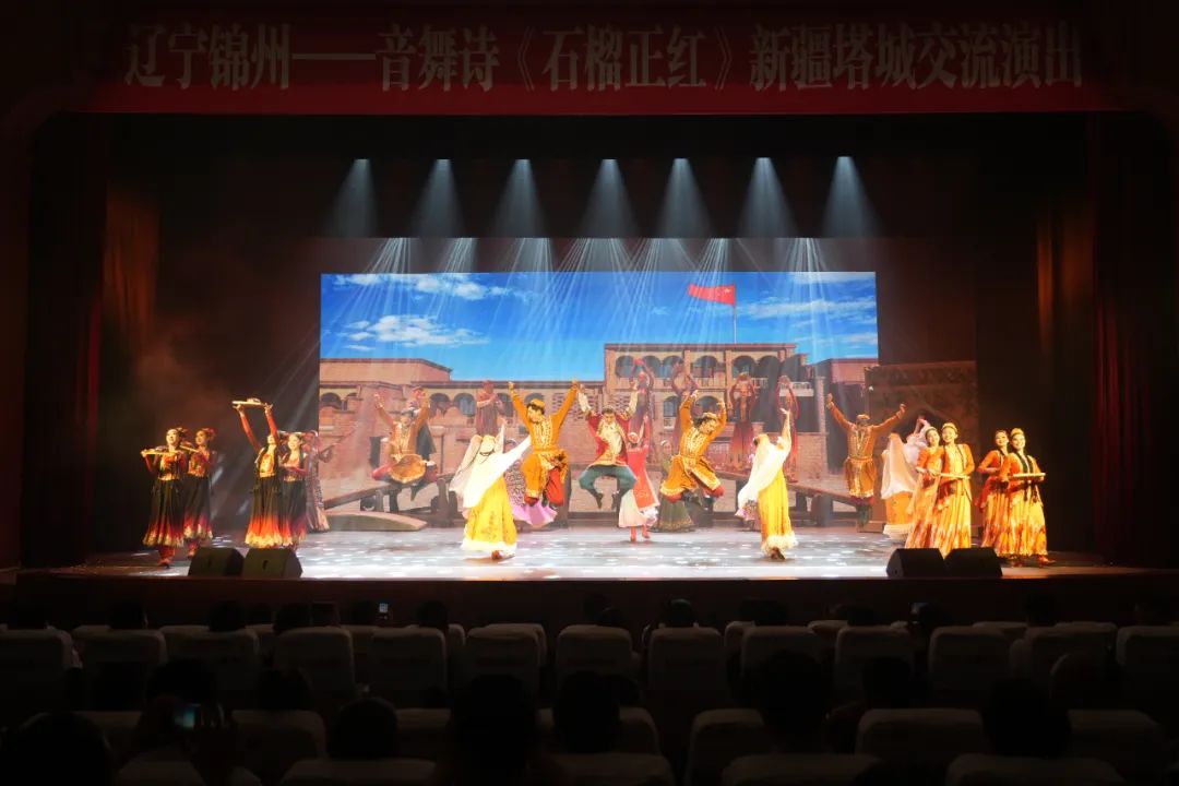 辽宁省锦州市音舞诗《石榴正红》交流演出在塔城音乐厅精彩上演。