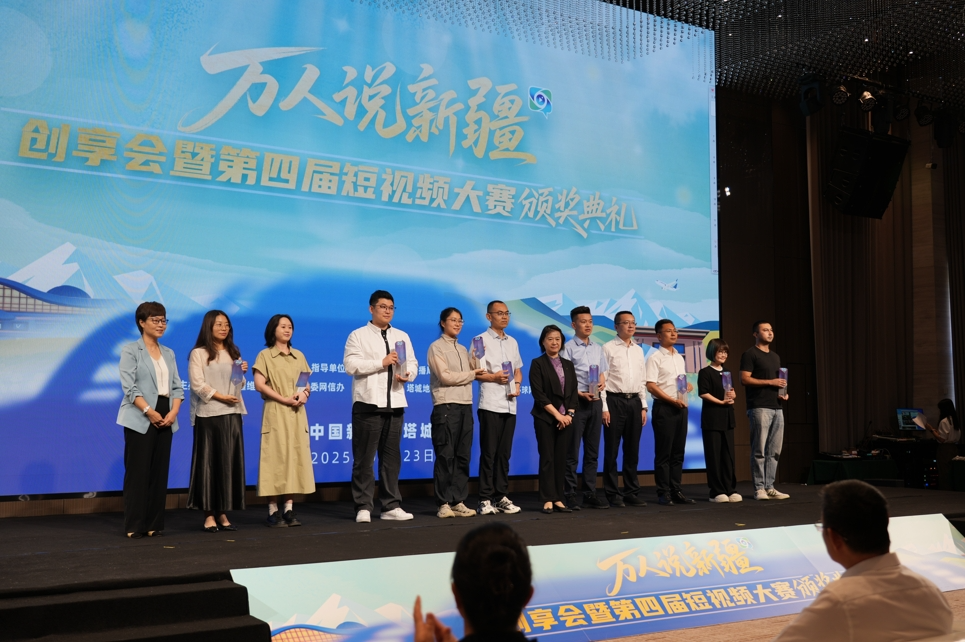 7月23日,由自治区党委网信办主办、塔城地委网信办承办的首届“万人说新疆”创享会暨第四届短视频大赛颁奖典礼在塔城市举行。