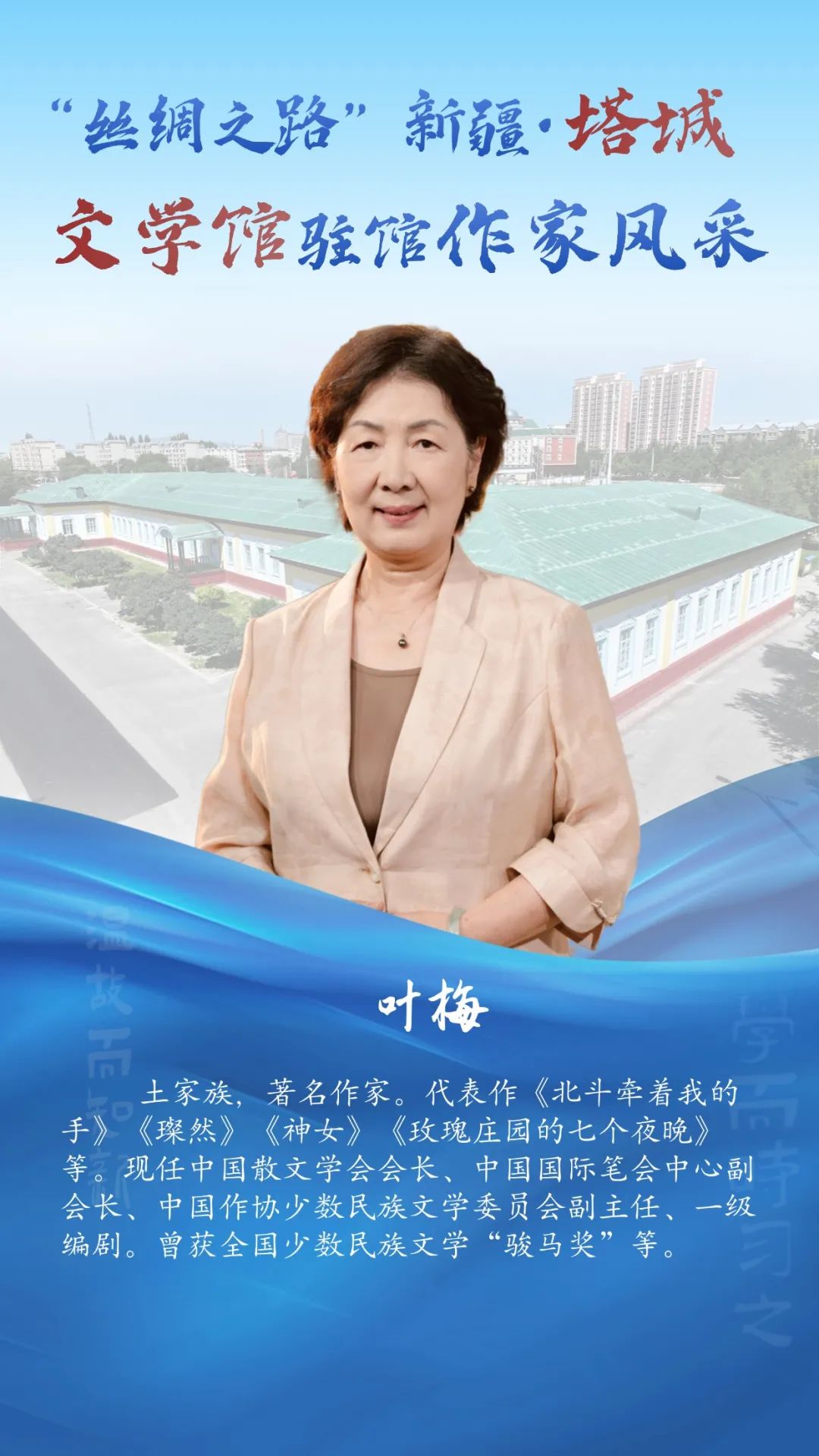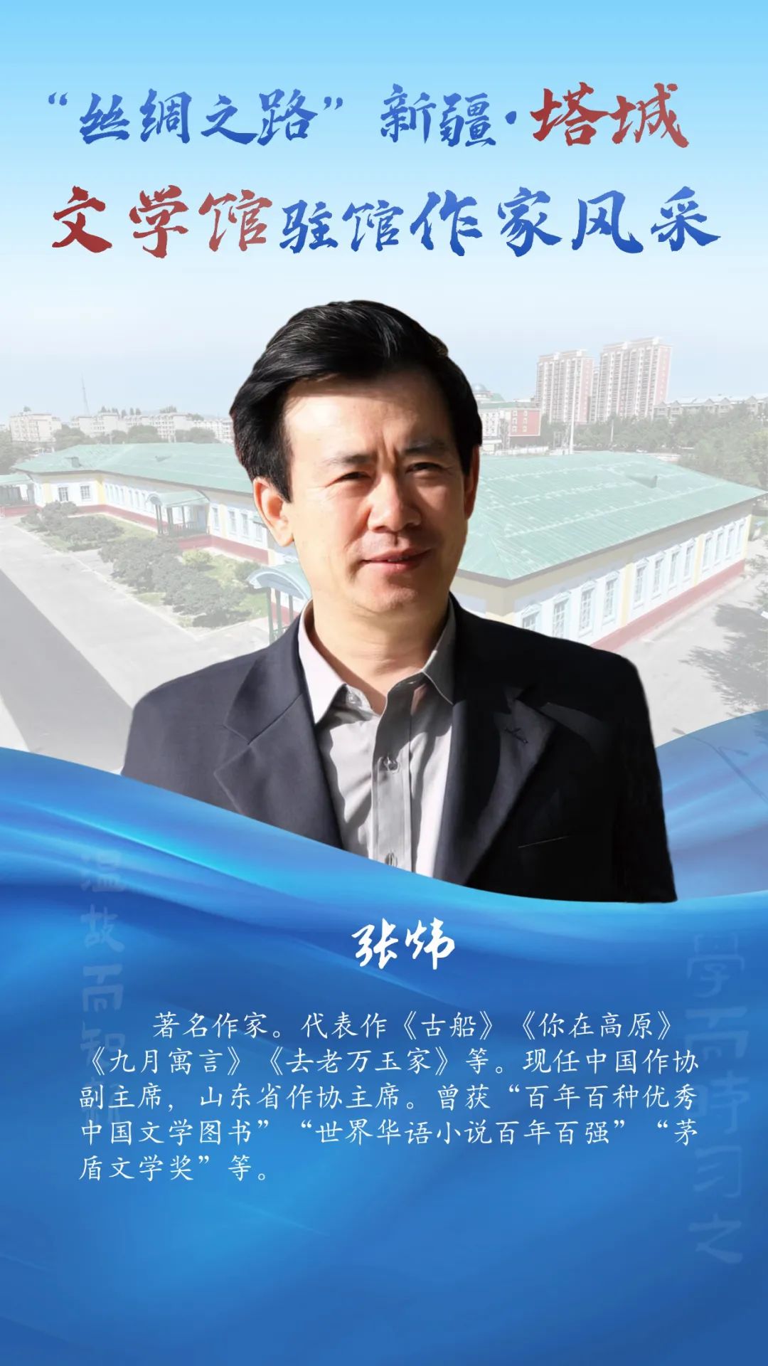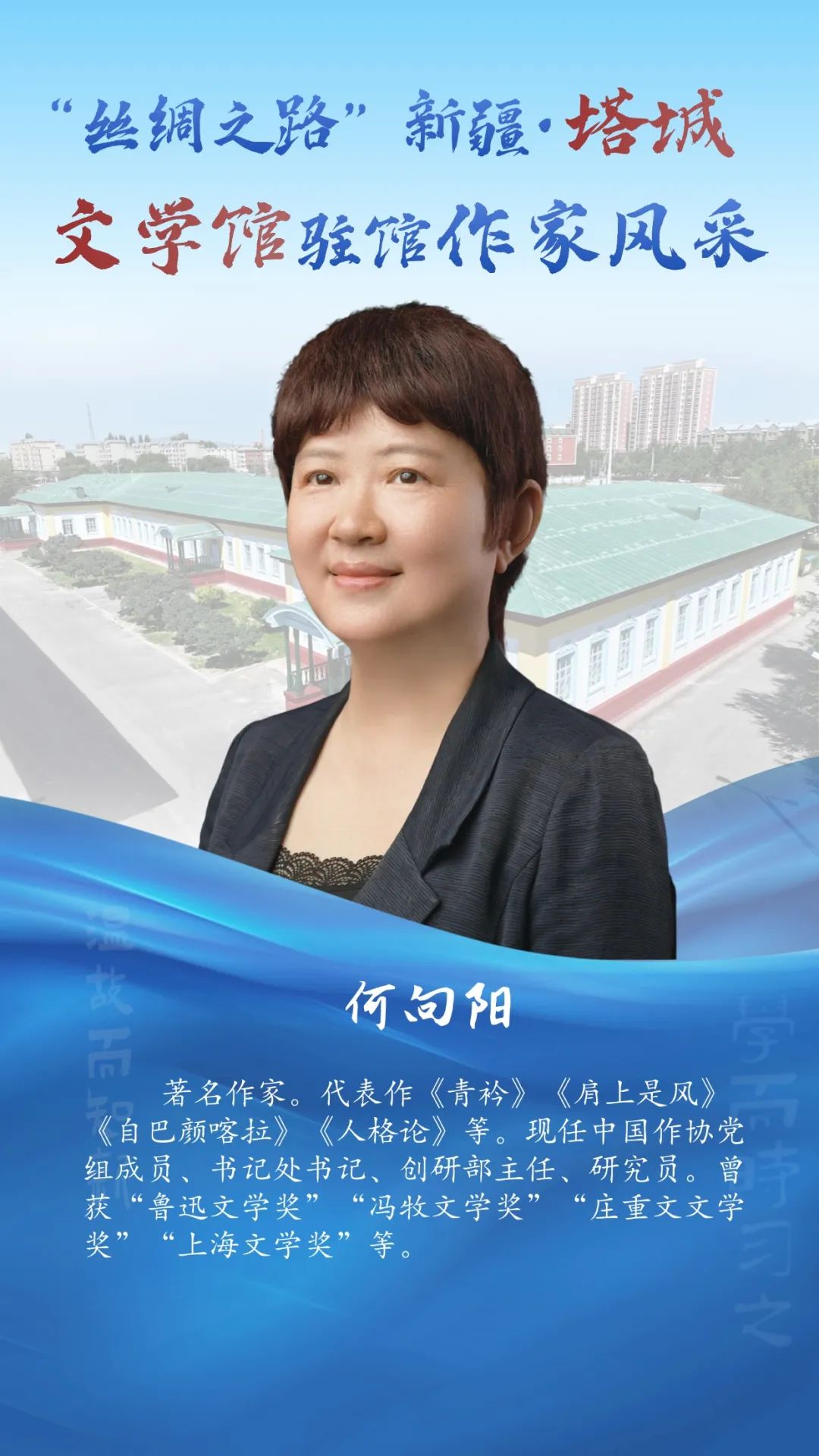 风采掠影!走近“丝绸之路”新疆・塔城文学馆驻馆作家 2025-07-28 12:46:20 塔城零距离 点击:[] 字体:小 大 “丝绸之路”新疆・塔城文学馆坐落于塔城市伊宁路塔城地区师范学校内,始建于1956年,1958年落成。整座建筑为砖木结构,红砖绿顶,占地面积7300平方米,是典型的苏联式建筑。2023年由上海设计师设计,改建为塔城文学馆。特邀9位国内知名作家入驻,打造风格各异的创作工作室,并融入微型书店,创新多彩文化体验场景,是塔城文化新地标。7月29日至7月31日将举办“丝绸之路”新疆·塔城文学馆展演展示暨“大美新疆·文学塔城”中外作家“一带一路”采风交流。今天让我们先一睹驻馆作家风采~
