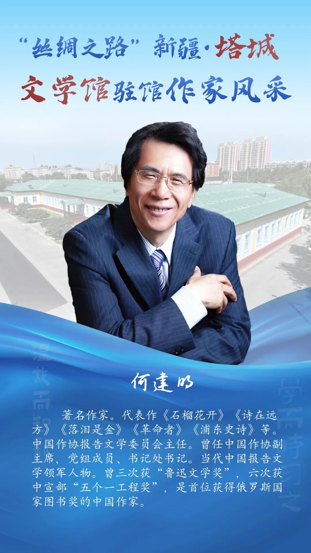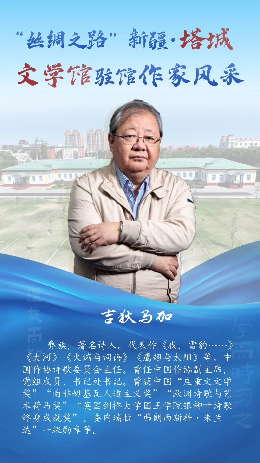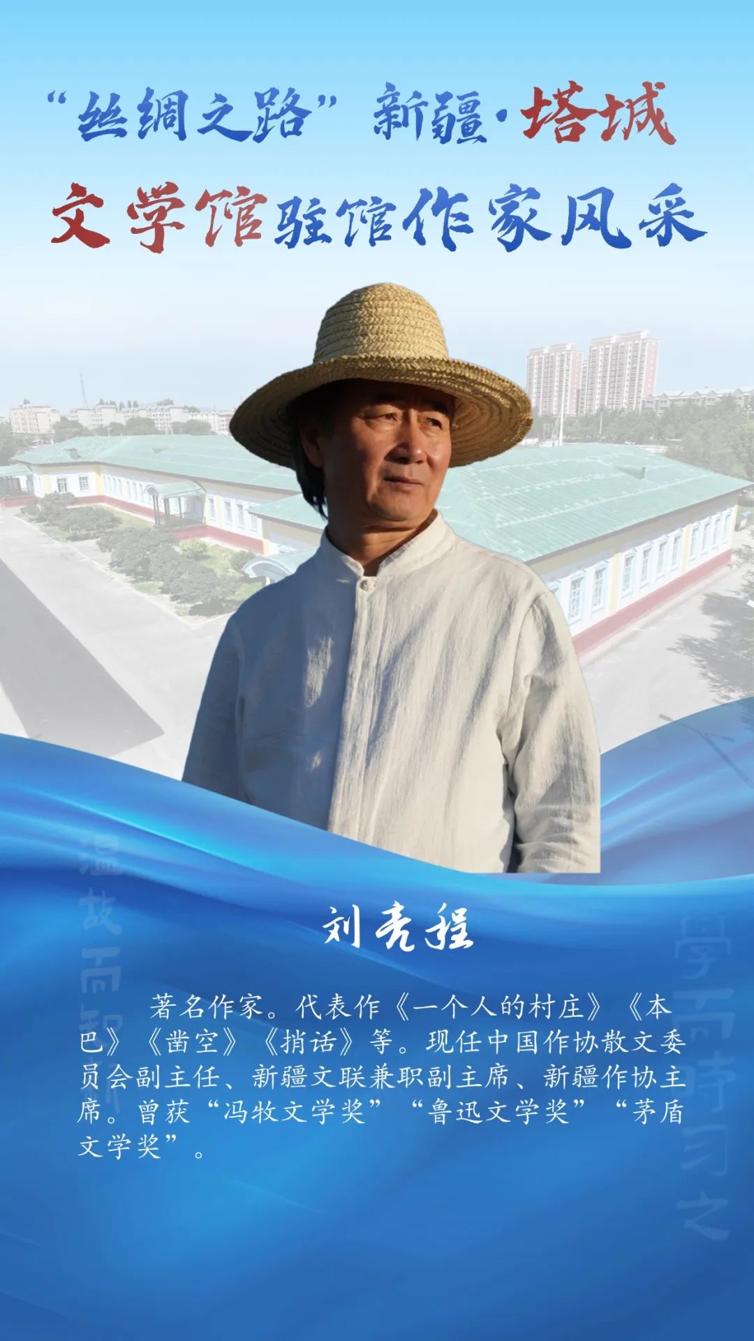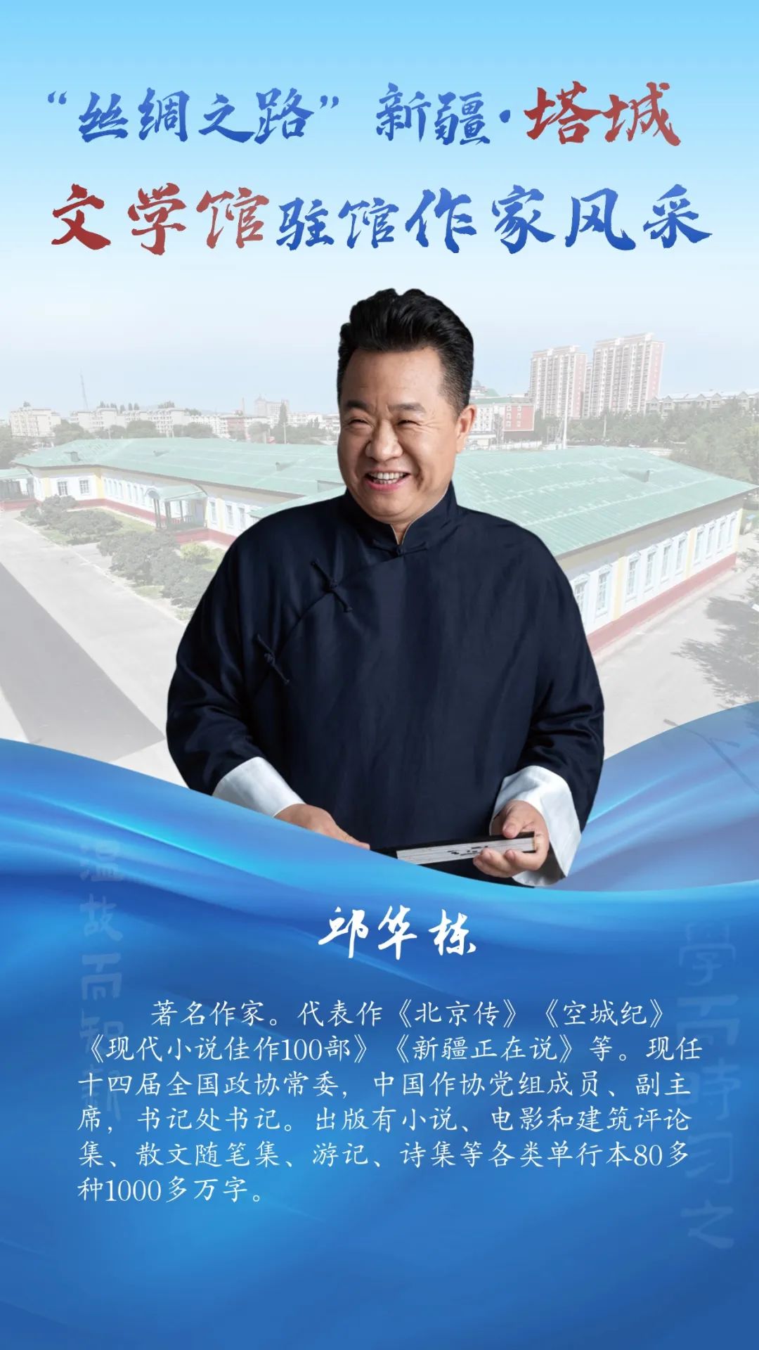风采掠影!走近“丝绸之路”新疆・塔城文学馆驻馆作家 2025-07-28 12:46:20 塔城零距离 点击:[] 字体:小 大 “丝绸之路”新疆・塔城文学馆坐落于塔城市伊宁路塔城地区师范学校内,始建于1956年,1958年落成。整座建筑为砖木结构,红砖绿顶,占地面积7300平方米,是典型的苏联式建筑。2023年由上海设计师设计,改建为塔城文学馆。特邀9位国内知名作家入驻,打造风格各异的创作工作室,并融入微型书店,创新多彩文化体验场景,是塔城文化新地标。7月29日至7月31日将举办“丝绸之路”新疆·塔城文学馆展演展示暨“大美新疆·文学塔城”中外作家“一带一路”采风交流。今天让我们先一睹驻馆作家风采~