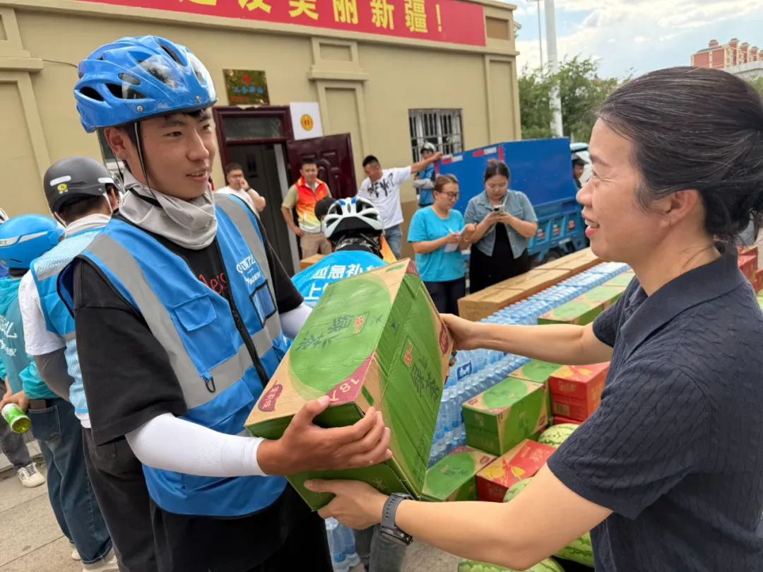 精准掌握这一实际诉求后,和布克赛尔县总工会即刻联动县委社工部,依托“一起益企”快速响应机制,在“717骑士节”当天组织开展了送清凉活动。活动现场,工作人员为100余名骑手精准发放清油、饮料、西瓜、矿泉水等防暑降温物资。