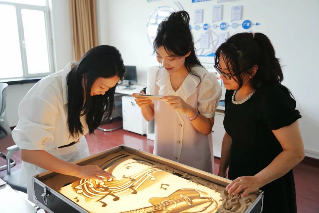 团队观摩学习沙画制作。