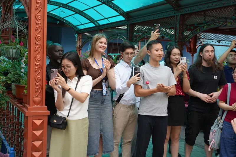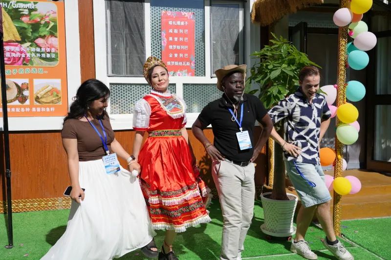 在额敏县榆柳巷,留学生们多民族相融共生和谐相处的场景感染,当热情好客的居民邀请他们一同跳起欢快的黑走马舞蹈时,不同肤色的身影在葡萄藤下旋转、欢笑,文化的隔阂在跃动的节奏中悄然消融。