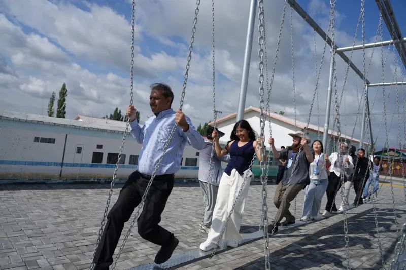 在库尔托别村体验“网红秋千”。塔城地区融媒体中心记者周文新摄