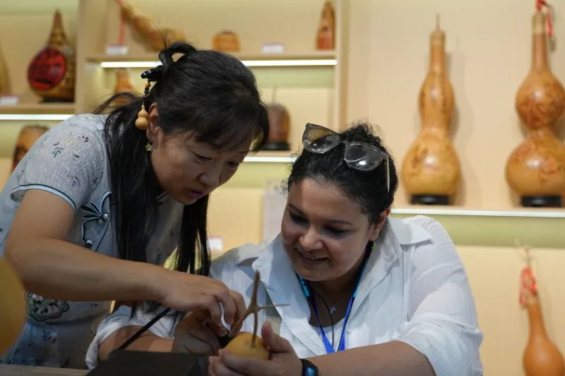 体验葫芦绘画技艺。塔城地区融媒体中心记者周文新摄