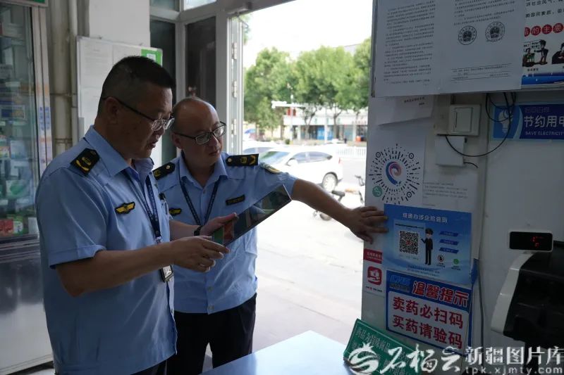 塔城地区市场监督管理局执法人员正在进行扫码检查。马合巴勒·木尔扎汗 摄