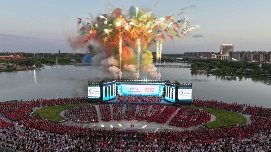 放烟花庆祝挑战“最大规模的手风琴合奏”吉尼斯世界纪录成功。