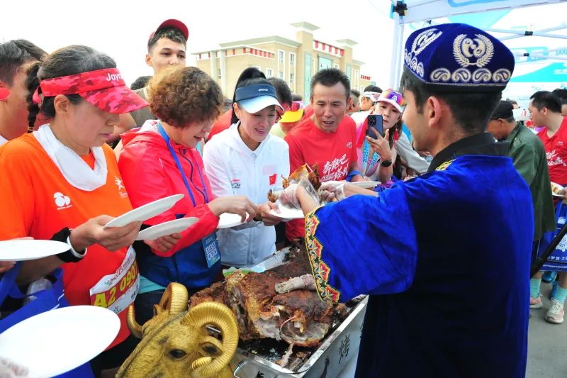 当日的赛事在完赛区巴克图口岸设置了“塔城美食文化长廊”,长达1.1米的塔塔尔族大面包、巴什拜烤全羊、冰淇淋等特色美食,让完赛选手在补充体能的同时,也能品尝到地道的塔城风味。