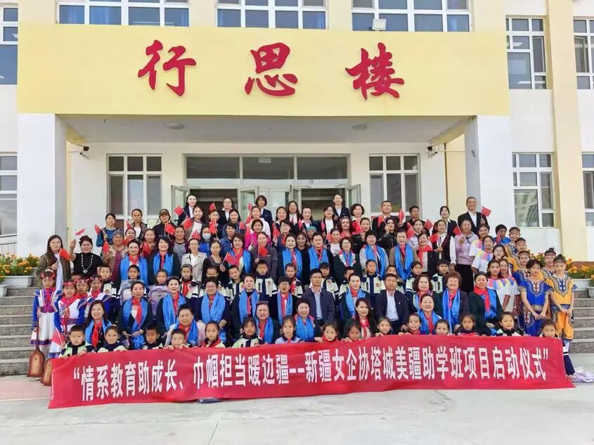 5日,在新疆妇联的指导下,新疆女企业家协会与北京市美疆助学基金会、新疆兆龙集团在新疆乌鲁木齐市乌鲁木齐县小渠子中学共同举行首个“美疆班”开班仪式。29名二年级学生获得女企业家们一对一资助。
