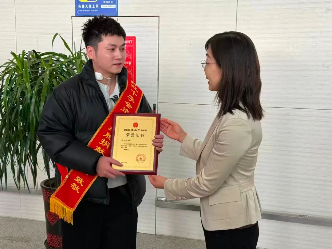 塔城地区红十字会给罗先生颁发捐献造血干细胞荣誉证书。