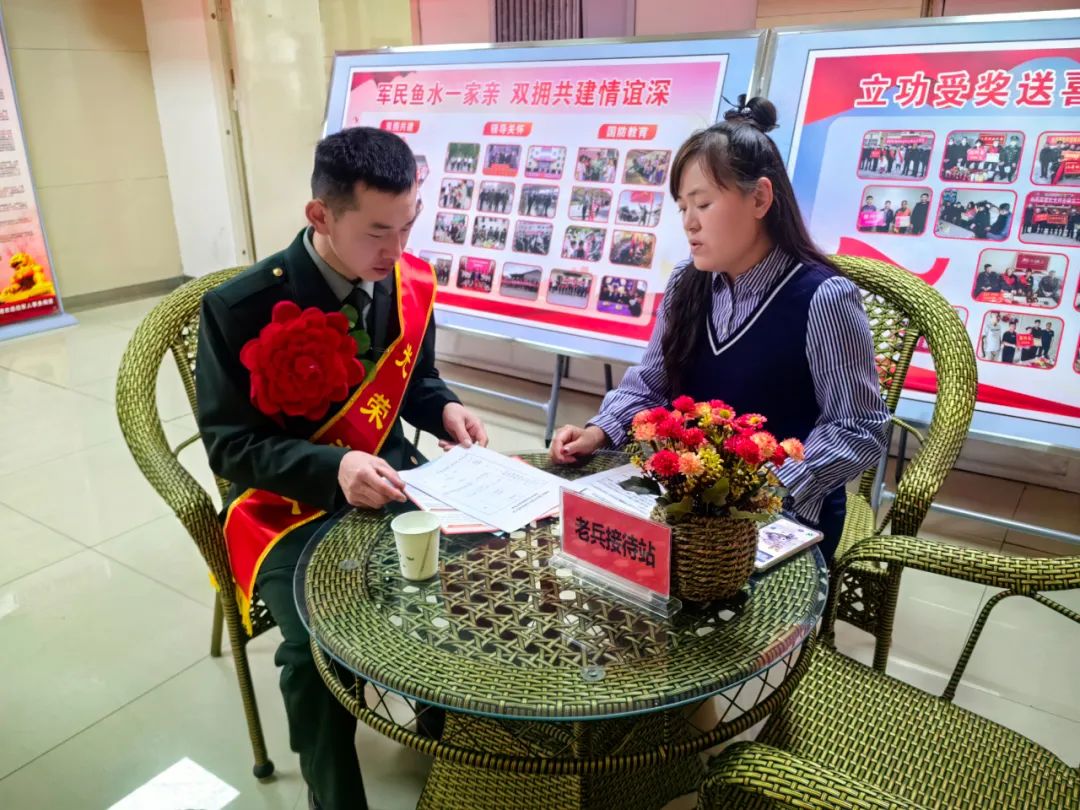 2024年2月28日,退役军人事务局干部接待返乡退役士兵。
