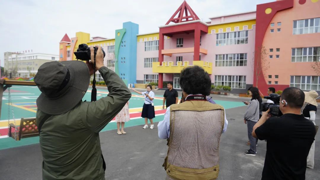 记者们在乌苏市第十幼儿园拍摄。
