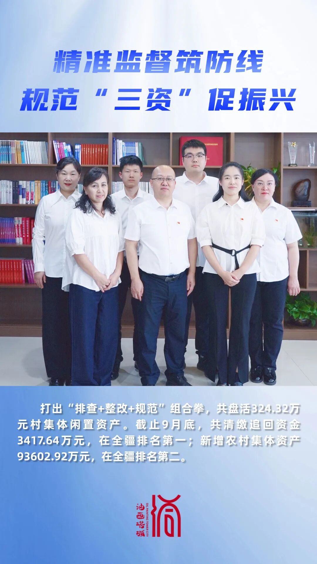 深入一线开展监督检查,推动农业农村部门建立权责明晰、长效运行的国有农用地管理机制,打出“排查+整改+规范”组合拳,共盘活324.32万元村集体闲置资产,挽回513.81万元集体损失,推动“三资”管理从“粗放式”向“精细化”转变。截至9月底,共清缴追回资金3417.64万元,在全疆排名第一;新增农村集体资产93602.92万元,在全疆排名第二。