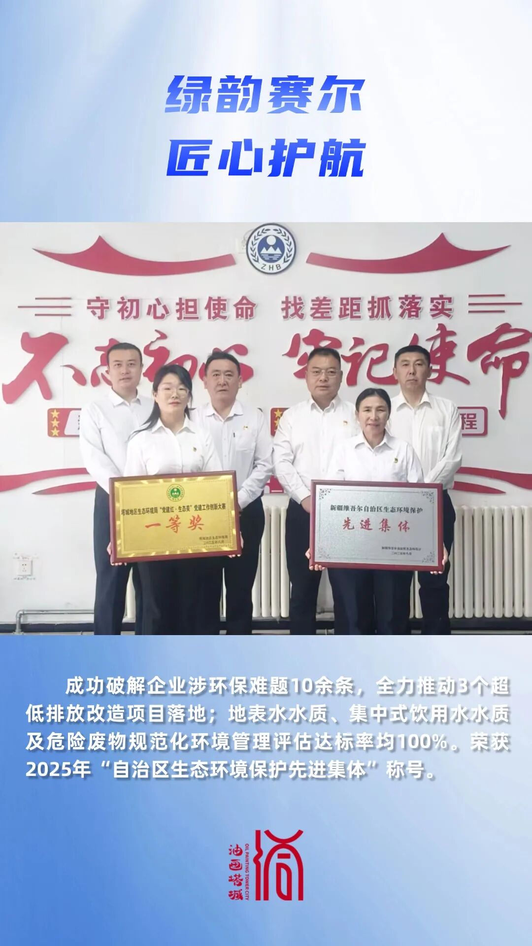 创新构建“1+4+12”服务模式,为项目建设、企业发展提供“一对一”精准服务,高效指导环评手续办理,成功破解企业涉环保难题10余条,以贴心服务为企业注入绿色动能。全力推动3个超低排放改造项目落地,县城空气质量优良率达100%,在全疆县市中排名第三;地表水水质、集中式饮用水水质及危险废物规范化环境管理评估达标率均实现100%。荣获2025年“自治区生态环境保护先进集体”称号,党建创新项目“党建红·生态美”斩获地区生态环境系统党建创新大赛一等奖。