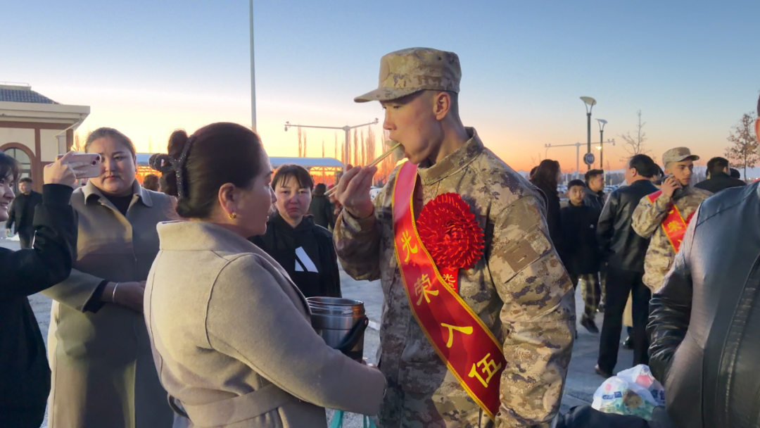 “马上要奔赴军营,穿上军装、扛起责任,我的心情特别激动,也无比光荣,到了部队,我一定会刻苦训练、严守纪律、服从命令,努力成为一名合格的军人,不负家人期盼,不负这身军装,请祖国放心,请家人放心。”和布克赛尔县新兵才·郎泽德说。