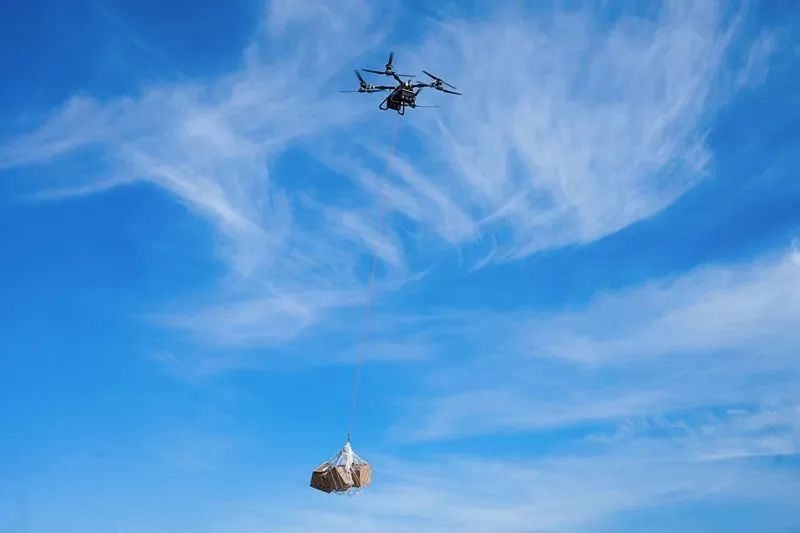大疆FC100展示无人机物资吊运场景应用。塔城地区融媒体中心记者阿拉新·素德别力克摄