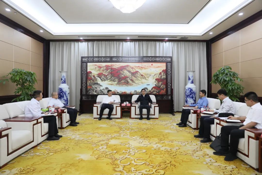 8月19日,地委书记支现伟与交通银行新疆分行党委书记、行长张国昌一行座谈。塔城地区融媒体中心记者张培琪摄