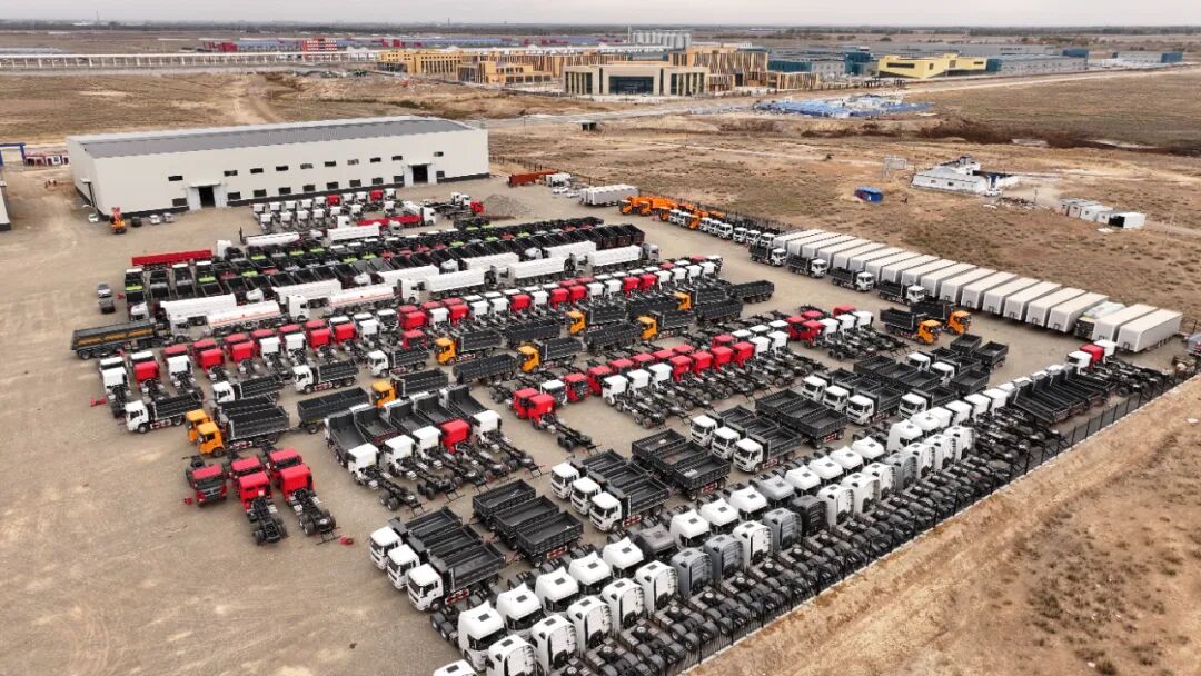 新疆乾锦禾汽车服务有限公司大件设备转运中心停放的车辆。塔城地区融媒体中心记者汪春林摄