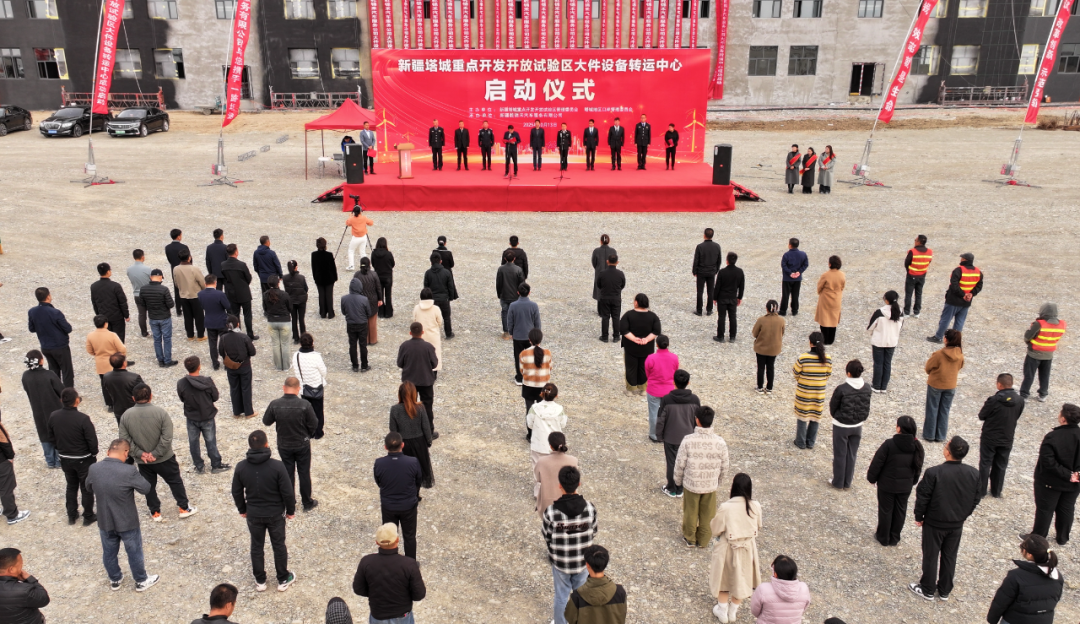 新疆塔城重点开发开放试验区大件设备转运中心启动仪式现场。塔城地区融媒体中心记者汪春林摄
