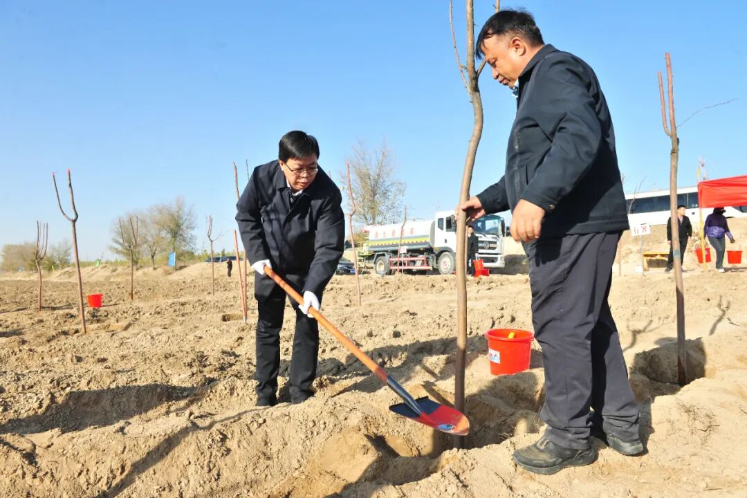 支现伟等一到现场,就拿起铁锹加入到植树队伍行列,同各族干部一起挥锹铲土、栽植新绿,大家分工协作、干劲十足,规范地完成树苗栽植的每道工序,现场一派热火朝天的景象。经过紧张有序的劳作,一株株红叶海棠树苗错落有致、迎风挺立,孕育着绿色的希望。支现伟在植树间隙叮嘱大家,植树造林既是绿化工程,也是民生工程,要扎实开展全民义务植树活动,加强栽植后的树木养护管理,确保树苗种植一片、成活一片、绿化一片,持续为地区增添新绿。