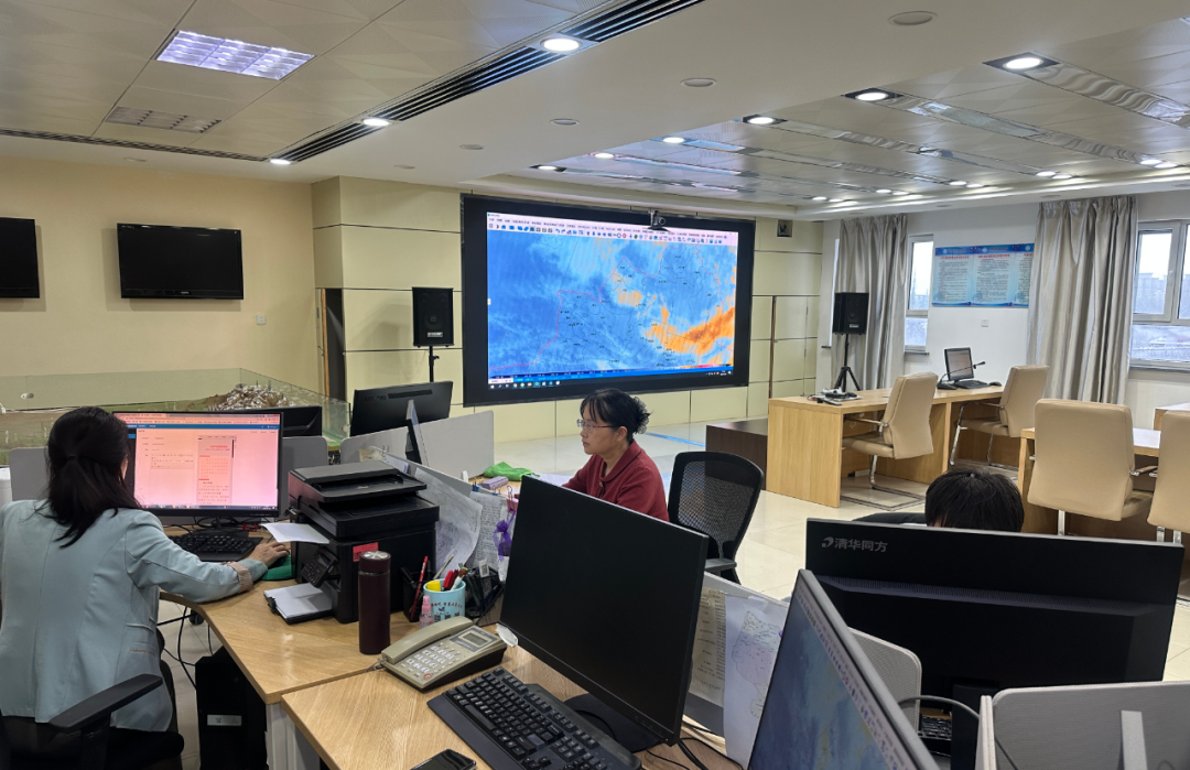 塔城地区气象局工作人员密切关注天气变化。