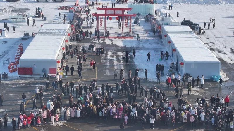 当日,皮圈滑道、雪地摩托、雪地大摆锤、雪地碰碰球、雪趣乐园、滑冰场、冰雕打卡等趣味十足的冰上娱乐活动吸引了众多游客参与,现场热闹非凡。